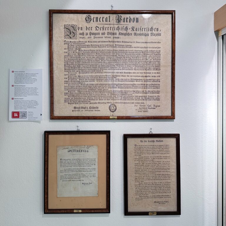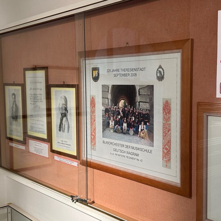 Diese Vitrine verbindet Erzherzog Carl mit der Traditionspflege des Infanterieregiments Nr. 42. Ein Notenblatt mit…