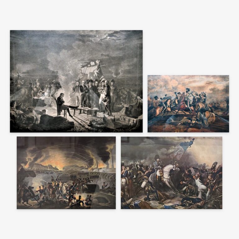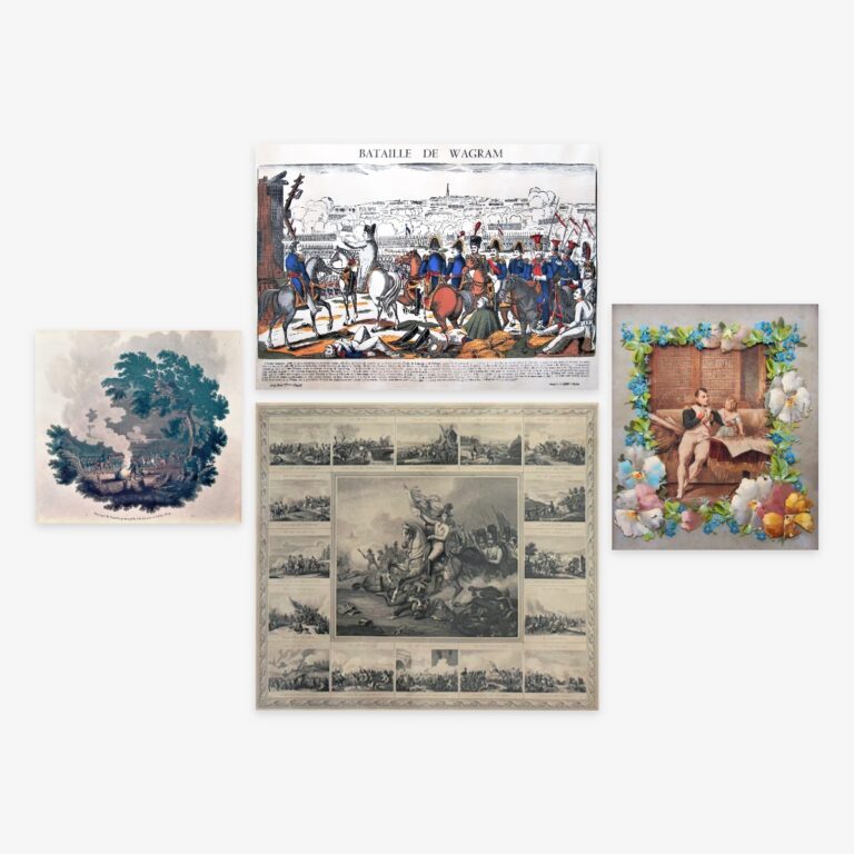 Ein großformatiges Blatt zeigt Marie-Louises „Ankunft in Paris“. Dazu kommt ein modernes Porträt Napoleons als…