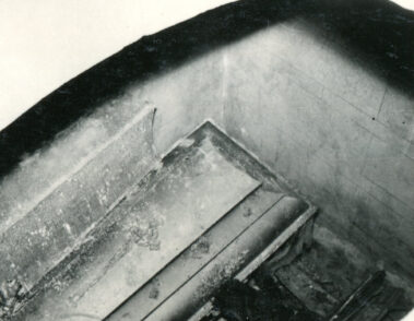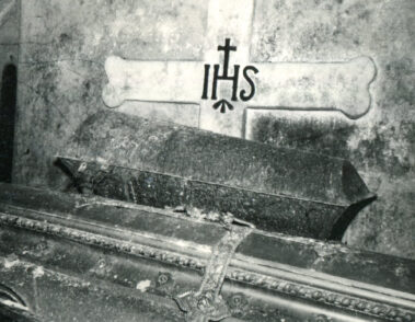 Fotos der amtlichen Gruftöffnung in der Monumentalkapelle. Insgesamt wurden 10 Familienmitglieder der Familie Tkalcsevich und Familie Krone hier bestattet. (Fotos: © Gustav Schlederer, Quelle: Stadtarchiv Deutsch-Wagram)
