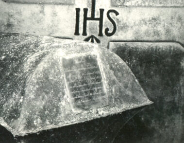 SR Prof. Otto Schilder an der Öffnung zur Gruft der Monumentalkapelle (Quelle: Stadtarchiv Deutsch-Wagram, Retusche: Christian Matula)