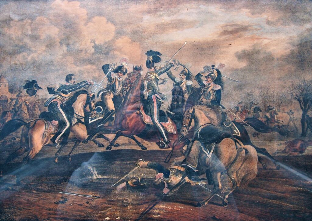 Die vier Darstellungen spannen den Bogen von den Kämpfen des Jahres 1809 bis zum Ende der napoleonischen Ära 1815: eine Reiterschlacht bei Aspern, die Belagerung Wiens am 11. Mai 1809 (Kapitulation am 12. Mai; Schlüsselübergabe am 13. Mai, Einzug der Franzosen um 6 Uhr früh), „La Bivouac de Napoléon“ zur Schlacht bei Wagram sowie die Schlacht bei Waterloo am 18. Juni 1815. Sie zeigen Lager, Angriff, Stadtkrieg und Entscheidungsschlacht in zeittypischer Bildsprache.