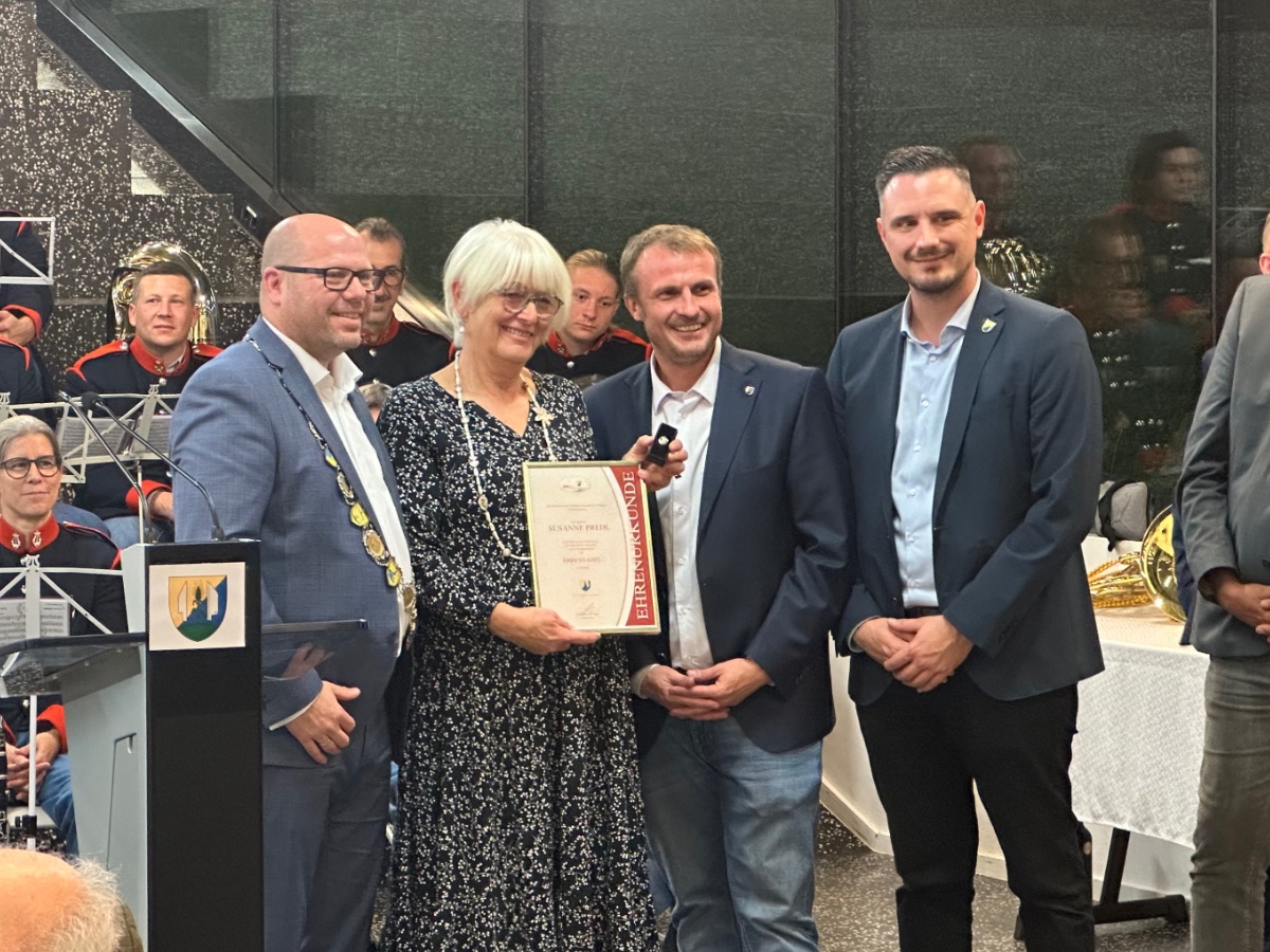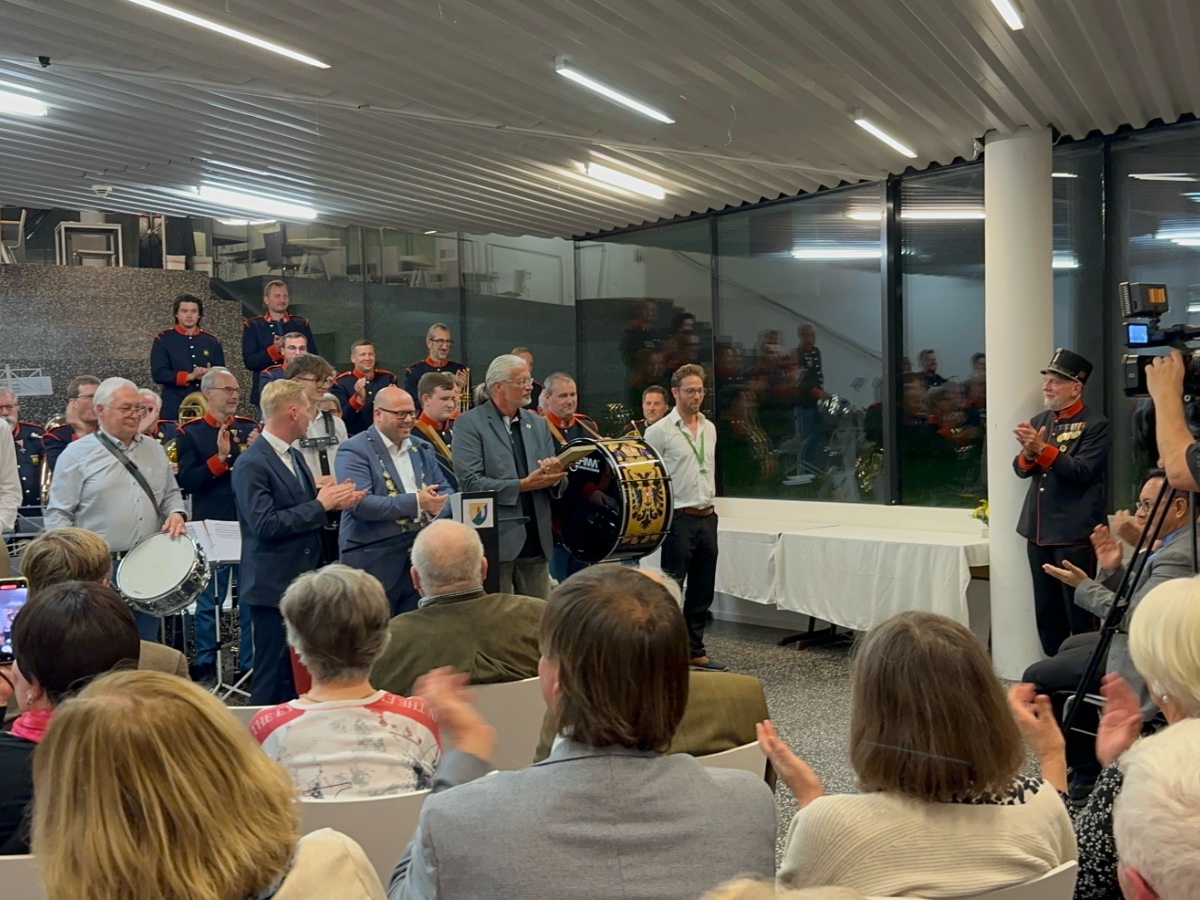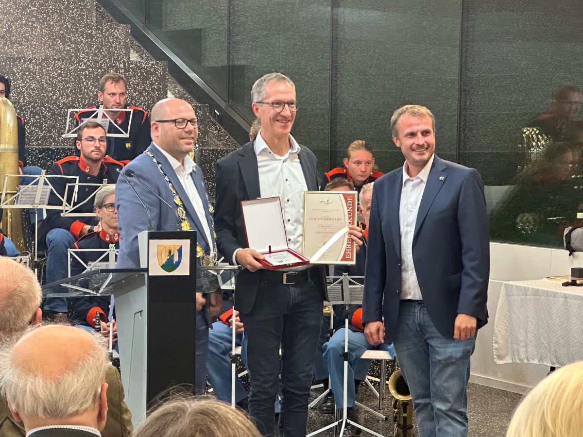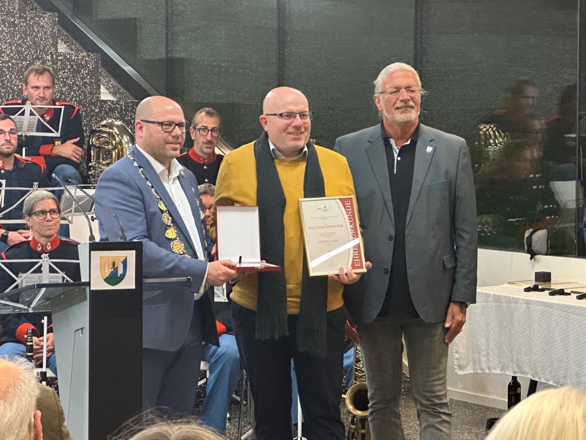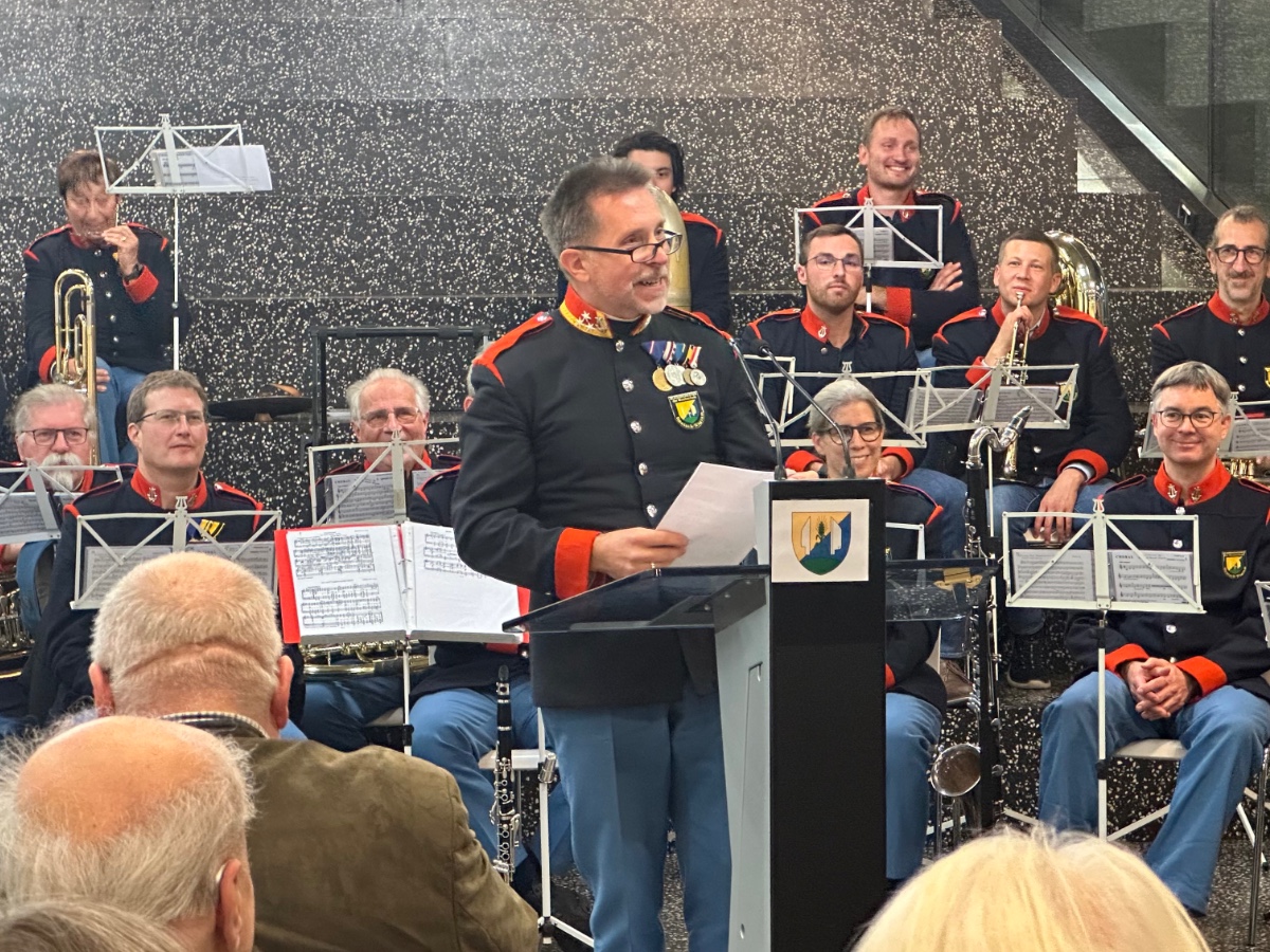 Ein besonders rührender Moment war die Ansprache von Horst Olek, der sich an seinen ehemaligen Schlagwerk-Schüler Karl Rosenmayer erinnerte und ihn als „besten und liebsten Schüler“ bezeichnete. Als Zeichen der Wertschätzung wurde Karl Rosenmayer ein Erinnerungsfoto überreicht – ein stiller, sehr persönlicher Moment innerhalb eines städtischen Festaktes. In dieser warmen Atmosphäre wurde schließlich der Ehrenring an Karl Rosenberger überreicht – sichtbar bewegend für den Geehrten und hörbar anerkennend vom Publikum.