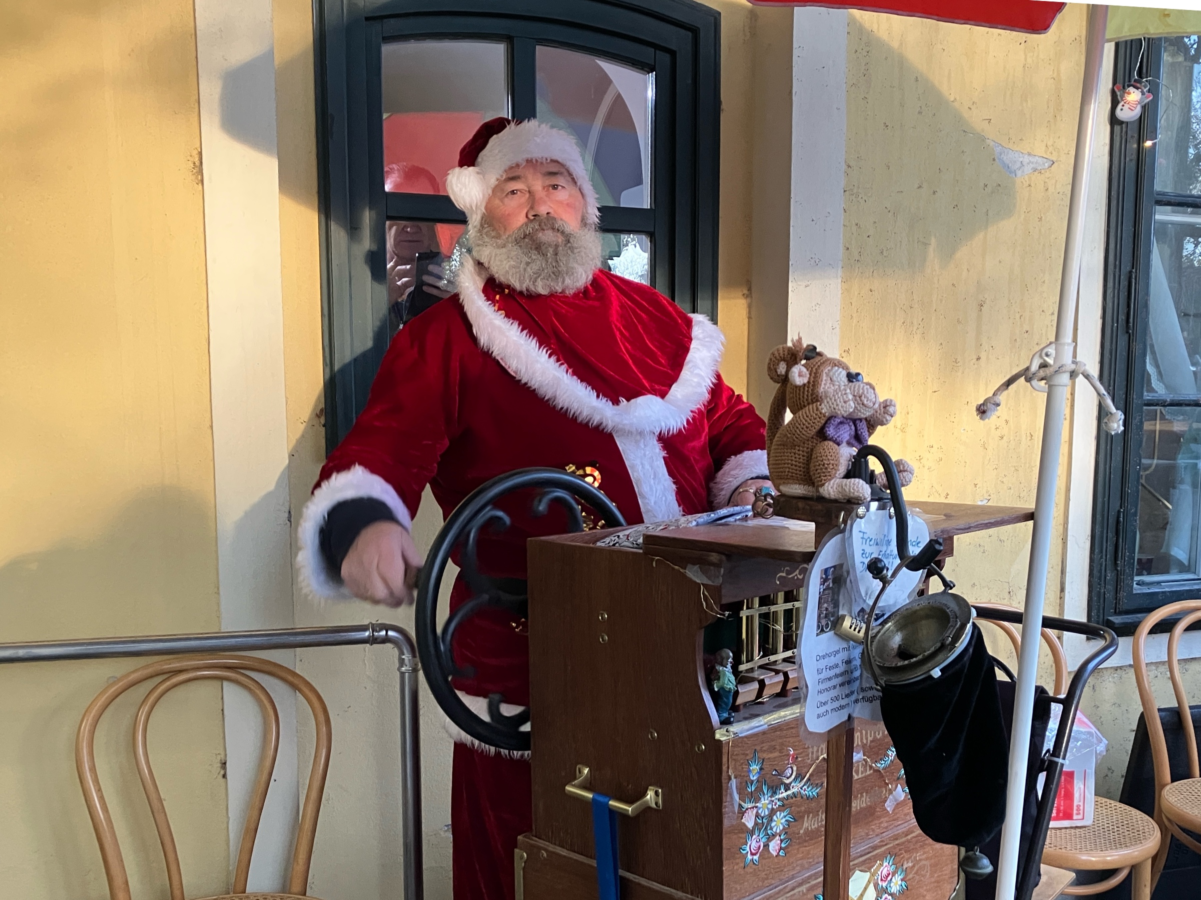 Für das leibliche Wohl sorgten Michael Adler und sein Team vom „Adlerhorst“ mit wohlschmeckenden Speisen und Getränken. Ergänzt wurde das kulinarische Angebot durch Frau Knasmillner und ihr Team, die wundervolle Schokofrüchte und feine Weihnachtsbäckerei anboten. Im Museumsgarten sorgte außerdem der „Weihnachtsmann“ mit seiner Drehorgel für stimmungsvolle Klänge und trug zur festlichen Atmosphäre bei.